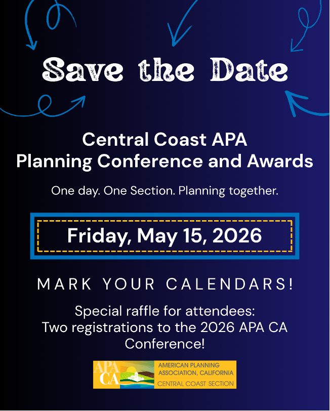 The Central Coast APA is hosting a Planning Conference and Awards Ceremony on Friday, May 15, 2026, at the Cabrillo Pavilion.